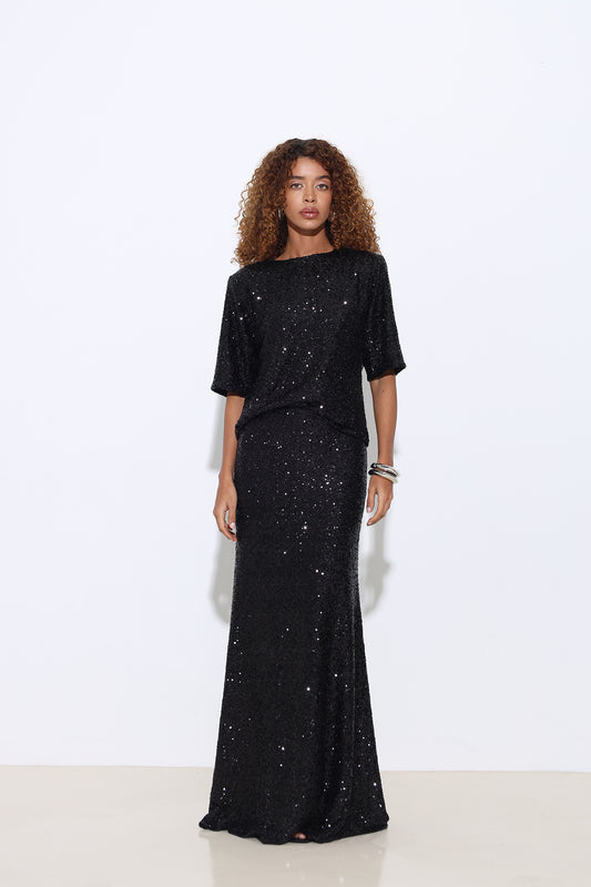 Aila Sequined Maxi Black Skirt