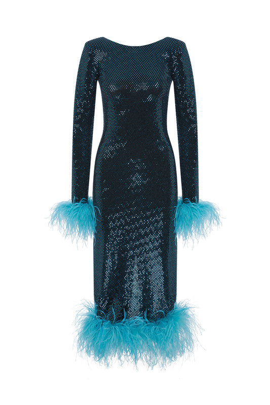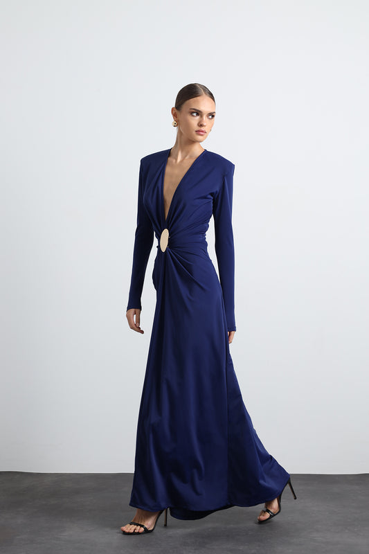 Sayora Long Sleeve Maxi Navy Blue Dress